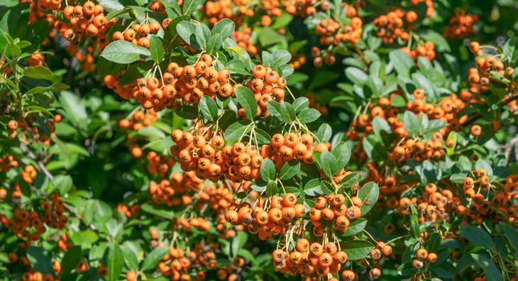 Eine Pflanze aus der Familie der Rosengewächse. Sie sind immergrüne Sträucher mit dornigen Zweigen und leuchtend roten Beeren, die im Herbst besonders auffällig sind.
